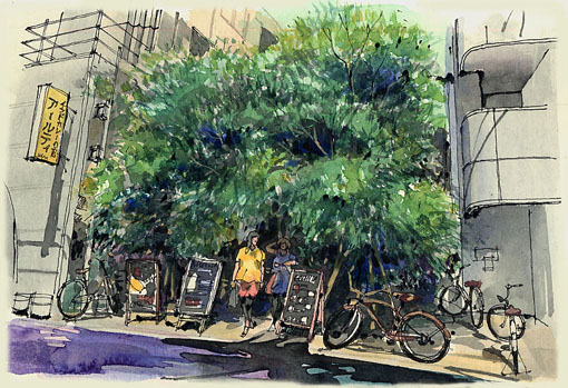 看板と木々しか見えないレストラン。2011,01記。2009,12作画。